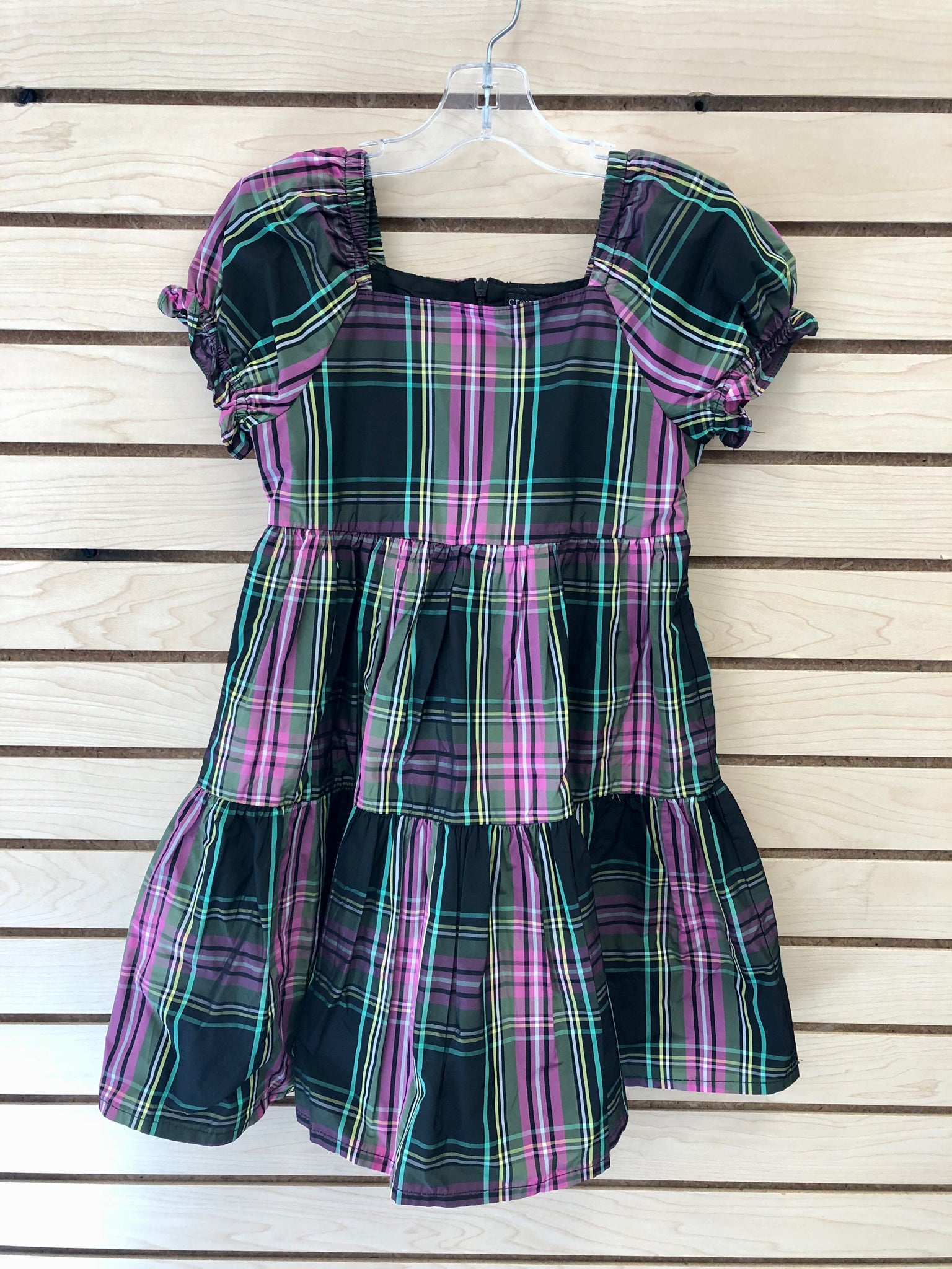 Black purple and green plaid party dress