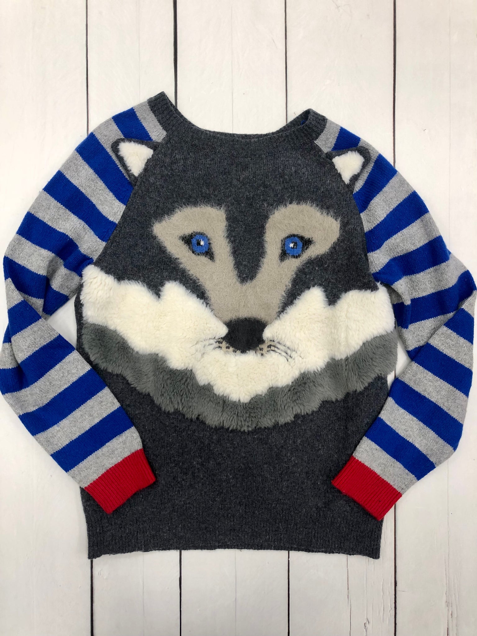 Blue grey striped wolf sweater